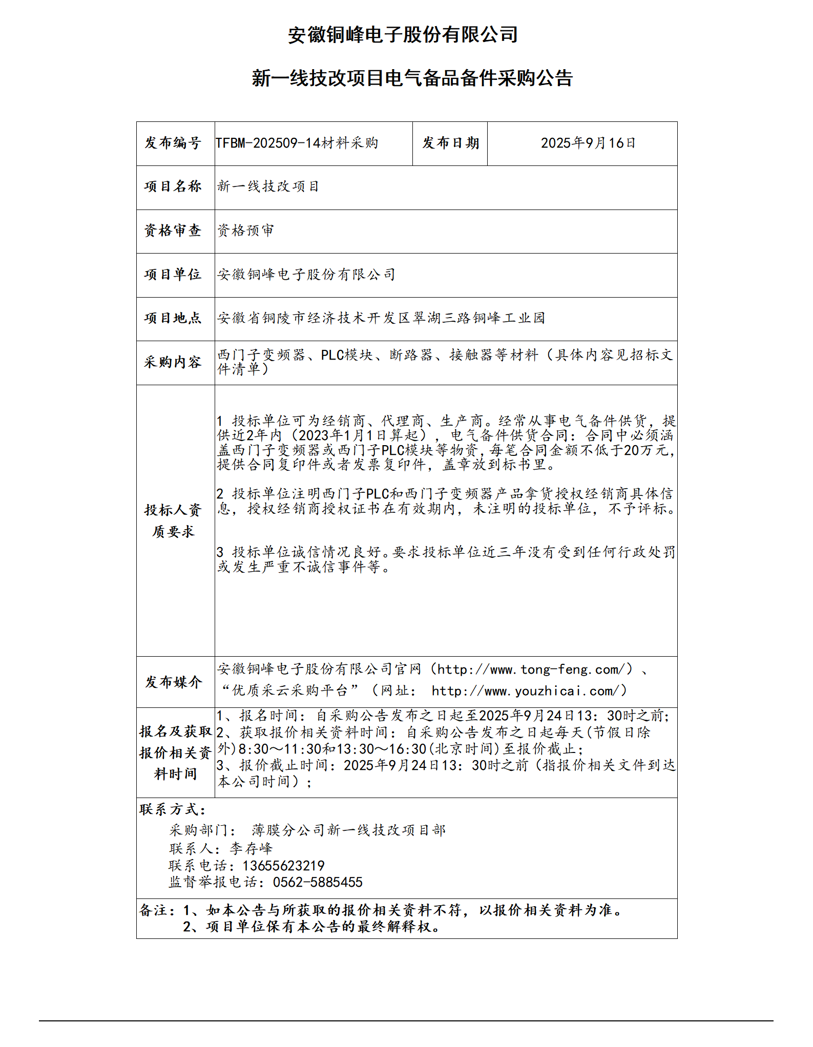 安徽銅峰電子股份有限公司 (新一線技改項目進(jìn)口潤滑油采購公告)_01