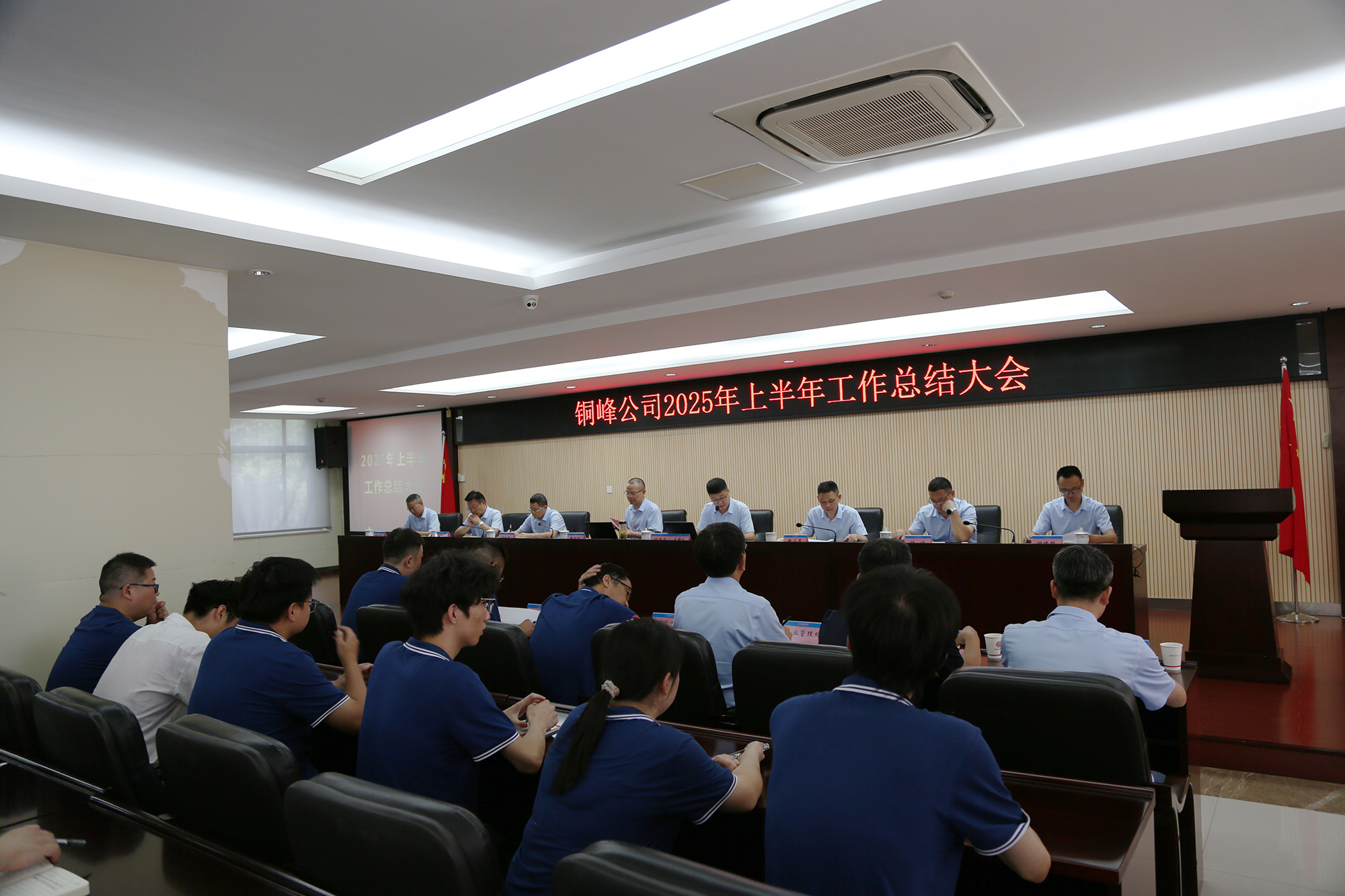8月8日下午,公司在辦公樓二樓職教室隆重召開2025年上半年工作總結(jié)大會。公司黨政領(lǐng)導(dǎo)班子成員、各生產(chǎn)經(jīng)營單位車間主任和職能部門主管級以上人員、部分職工代表和新進(jìn)大學(xué)生代表等參加會議。會議認(rèn)真復(fù)盤上半年運(yùn)營成果,深入分析當(dāng)前經(jīng)營形勢,精心謀劃下半年重點(diǎn)工作。公司黨委書記、董事長黃明強(qiáng)出席會議并作總結(jié)講話,對公司上半年工作進(jìn)行總體分析,對下半年工作提出要求??偨?jīng)理鮑俊華主持會議,并對公司各單位和部門的具體工作進(jìn)行點(diǎn)評。公司各生產(chǎn)單位和相關(guān)職能部門分別匯報了上半年主要工作及下半年工作計劃。