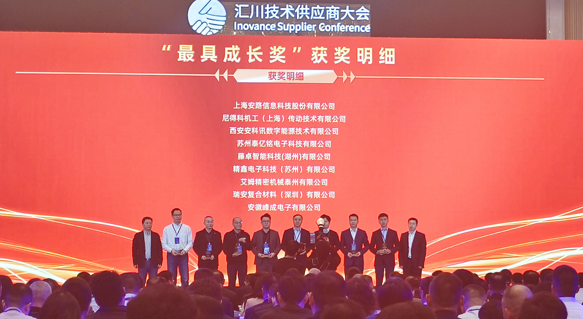 峰成公司榮獲匯川技術(shù)供應(yīng)商“最具成長(zhǎng)獎(jiǎng)”